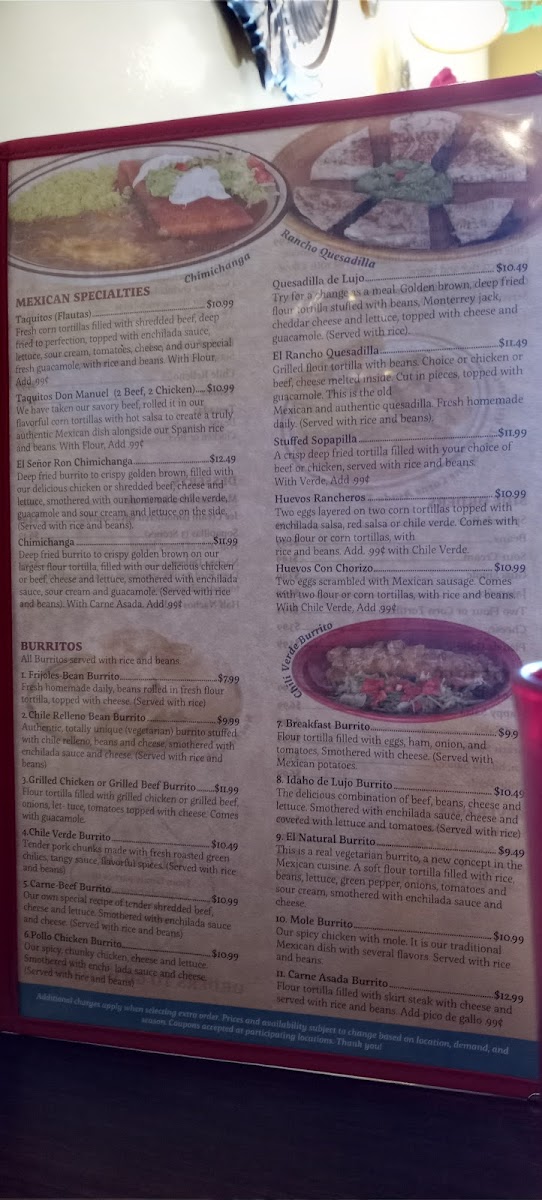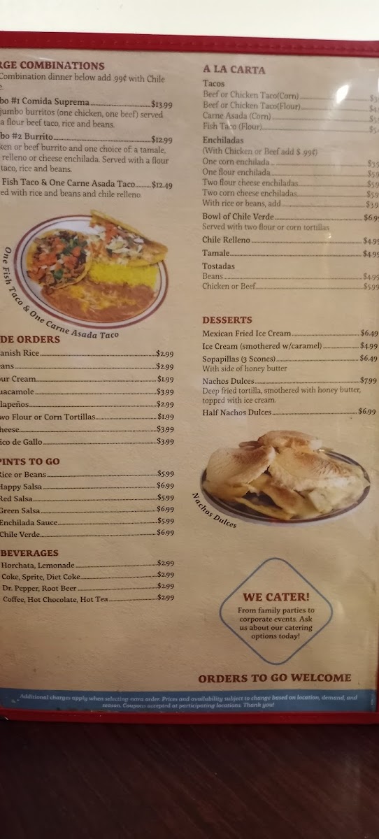 On the menu, you’ll find tasty favorites like cheese enchiladas paired with chile relleno, hearty steak ranchero, and satisfying combo burritos. These dishes fit well with the warm, friendly atmosphere, inviting you to sit back and savor each bite at your own pace. The menu also includes comforting beverages such as horchata, alongside traditional options like Coke and Dr. Pepper, which complement the meal and add to the unhurried, easygoing mood.