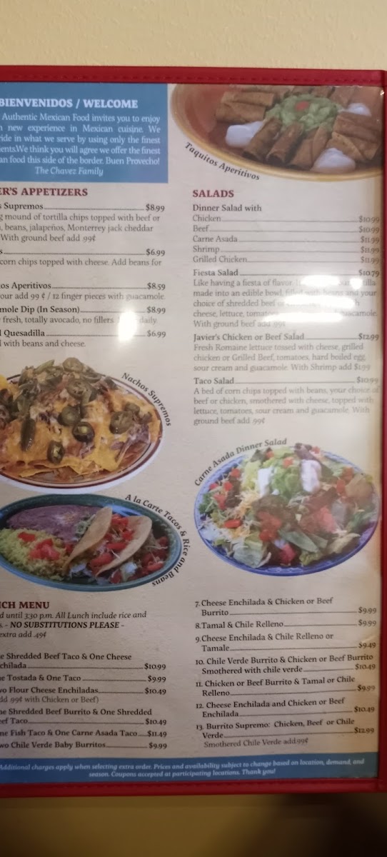 Javier's Authentic Mexican Food Menu
